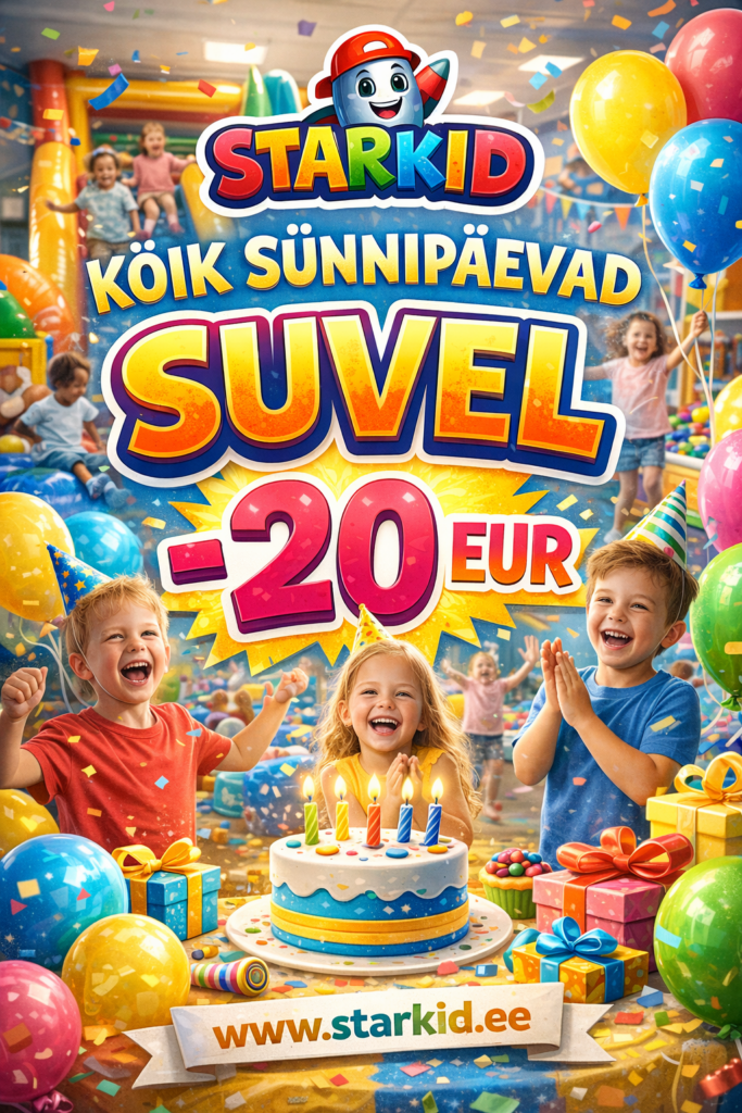 LASTE SÜNNIPÄEVA PEO- JA MÄNGUTUBA Valige mängutuba - Peoruum STARKID MÄNGUTUBA Privaatne 630m2 3 Korrus STARKID JUNIOR MÄNGUTUBA Privaatne 430m2 2 Korrus